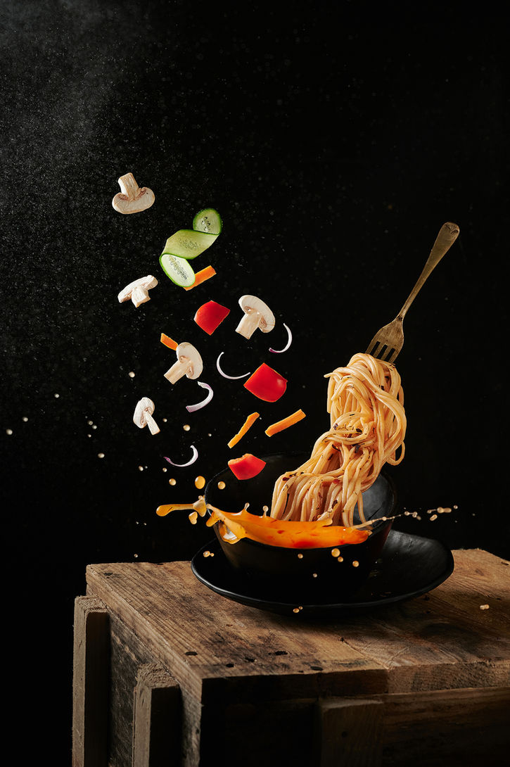 Food, frozen in frame